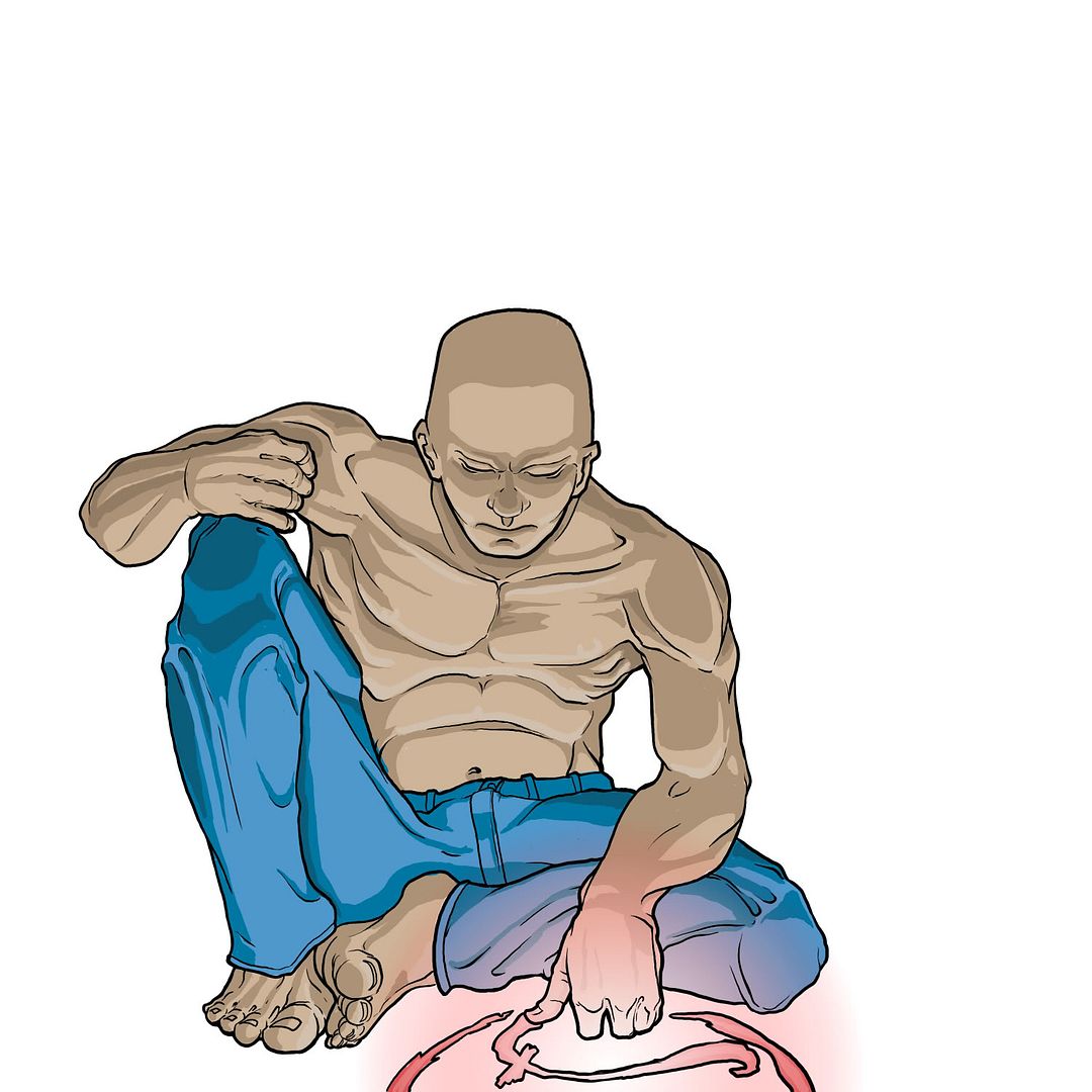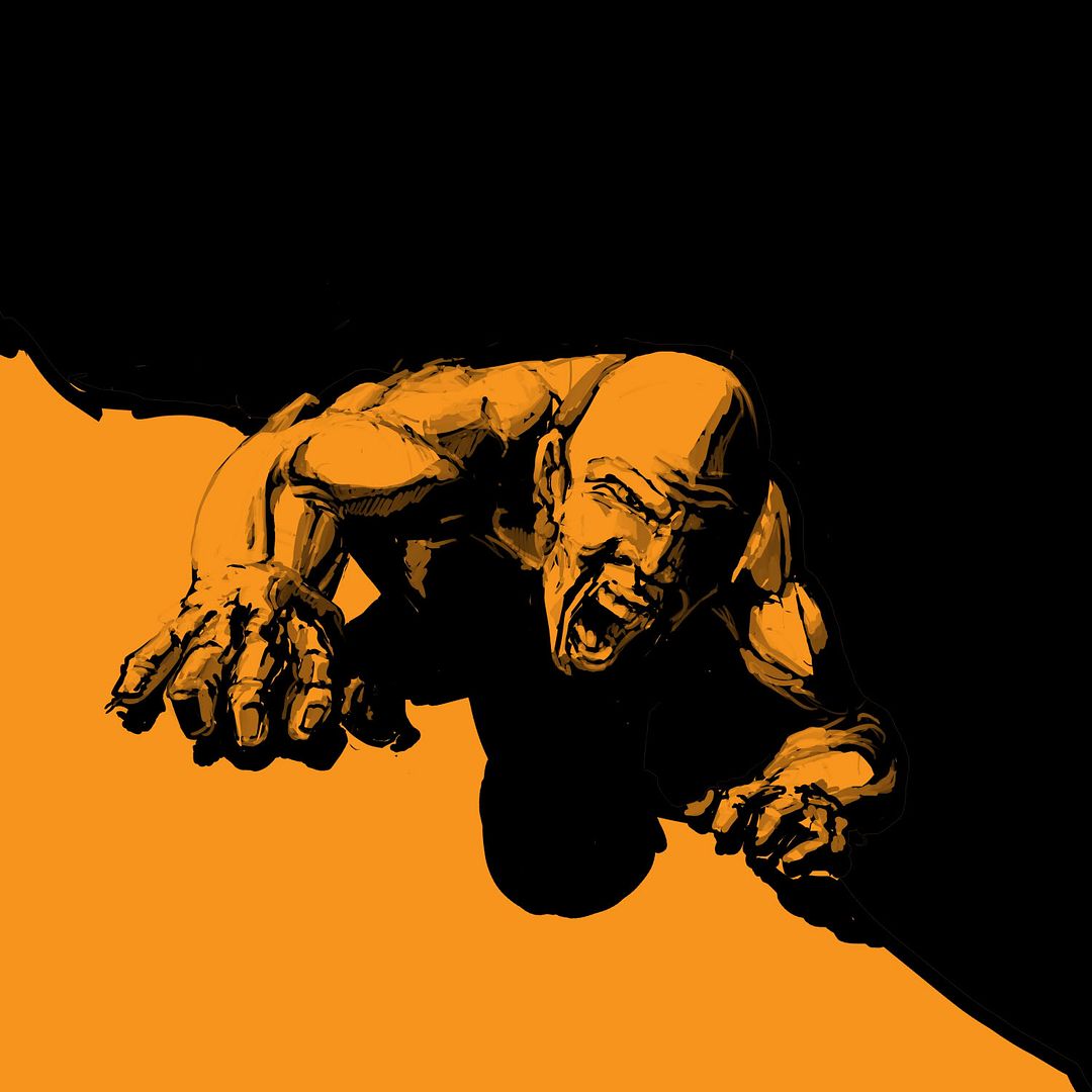 Same core drawing, but two updates. First, just the new inking part. Then, one possible shading direction. Note that not yet drawn is the inking for the stylized flames that will be surrounding his hands.